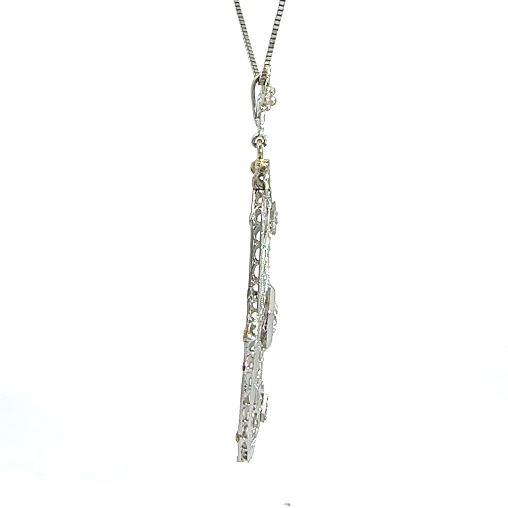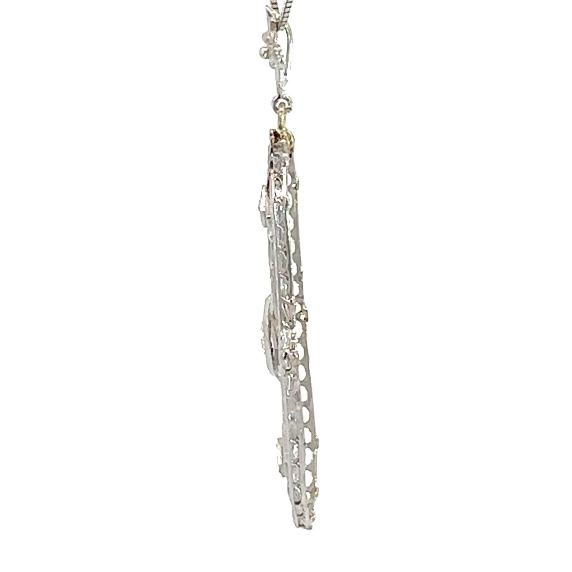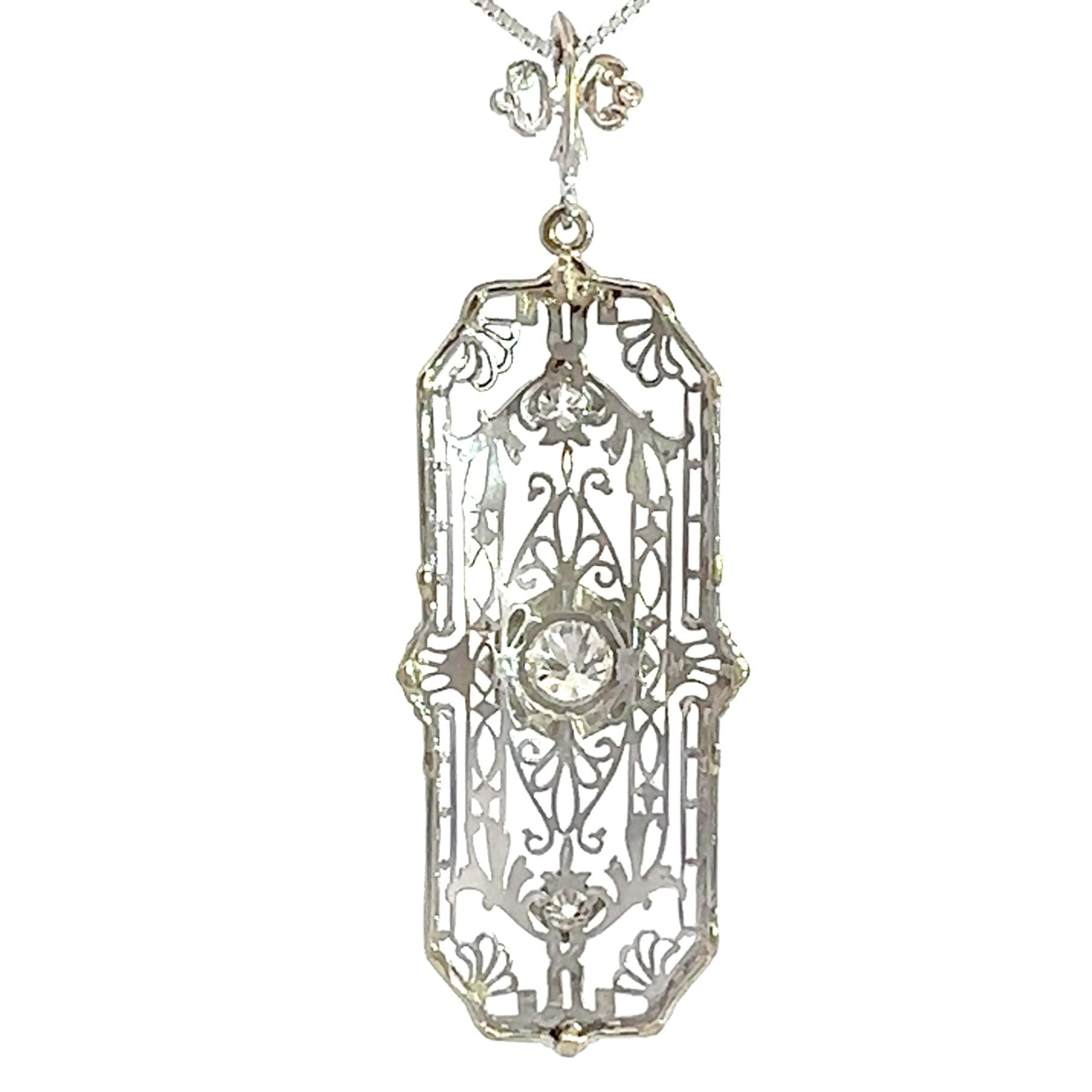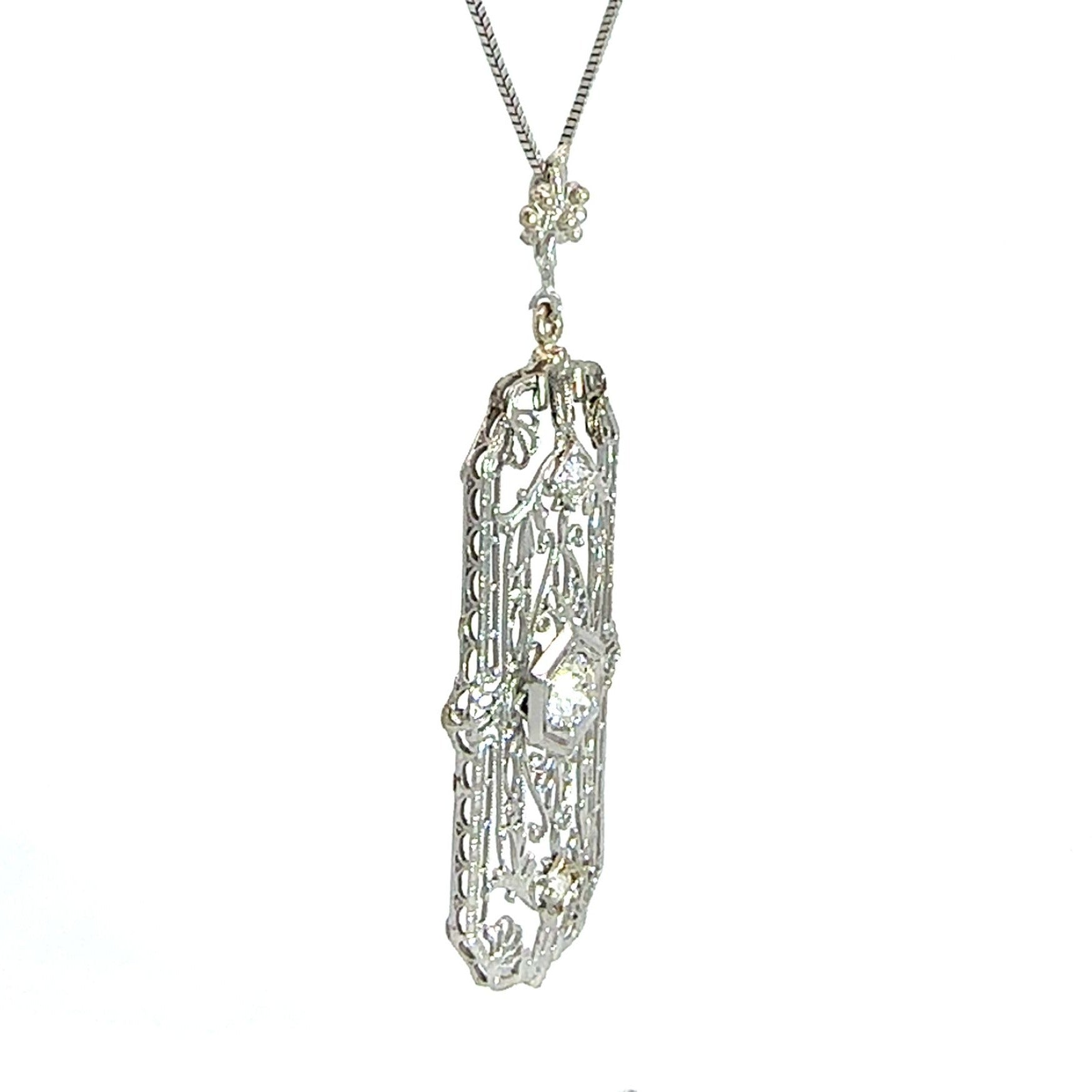 14K White Gold Filigree Pendant with Old European Cut Diamonds on 24-Inch Box Chain