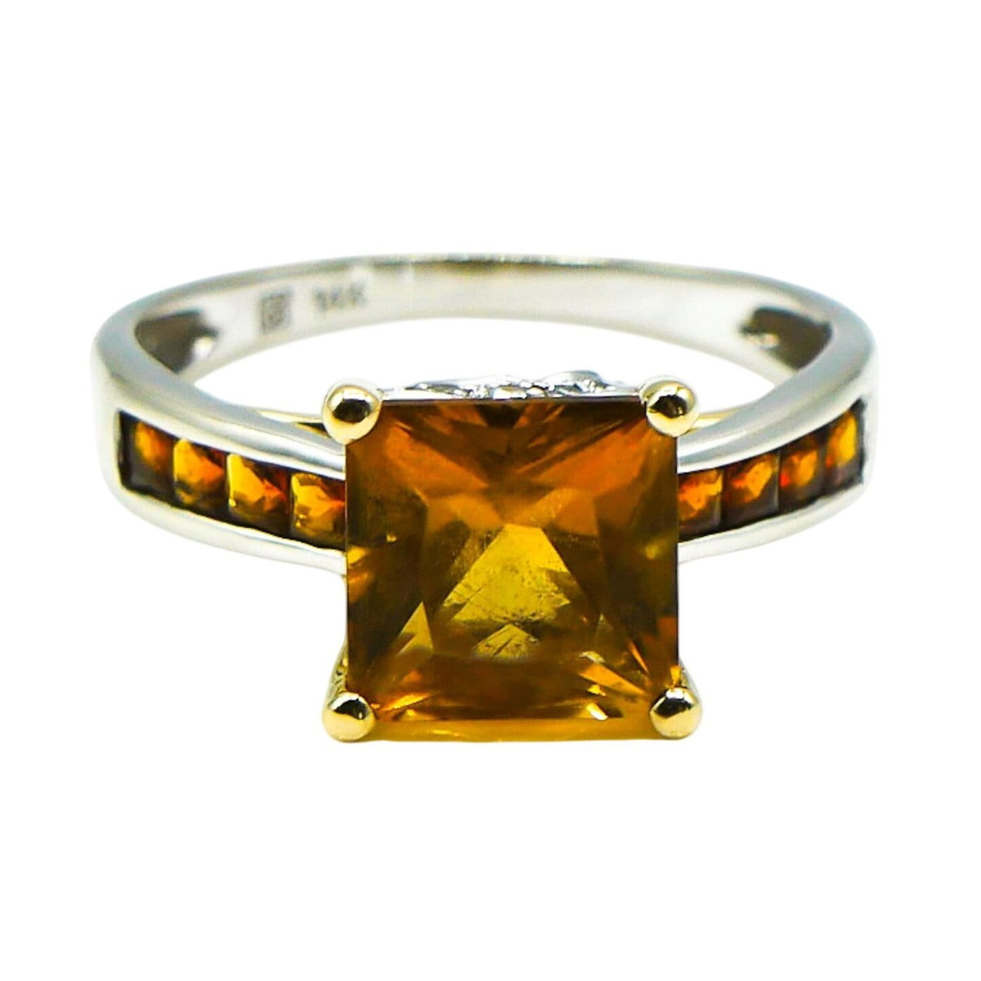 This elegant 14K two-tone gold ring showcases refined craftsmanship and warm gemstone brilliance in a timeless design. Featuring a striking square-cut Madeira citrine, this ring blends rich golden hues with classic white gold accents for a sophisticated and luxurious look.