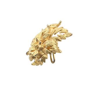 Vintage 1950s Crown Trifari Gold Tone Textured Leaf Brooch With Original Tag