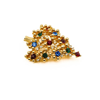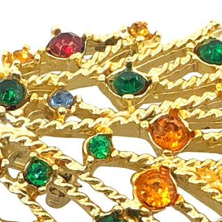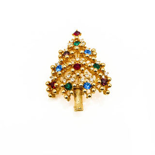 Vintage Gold Tone Christmas Tree Brooch With Rhinestone Ornaments and Star Topper