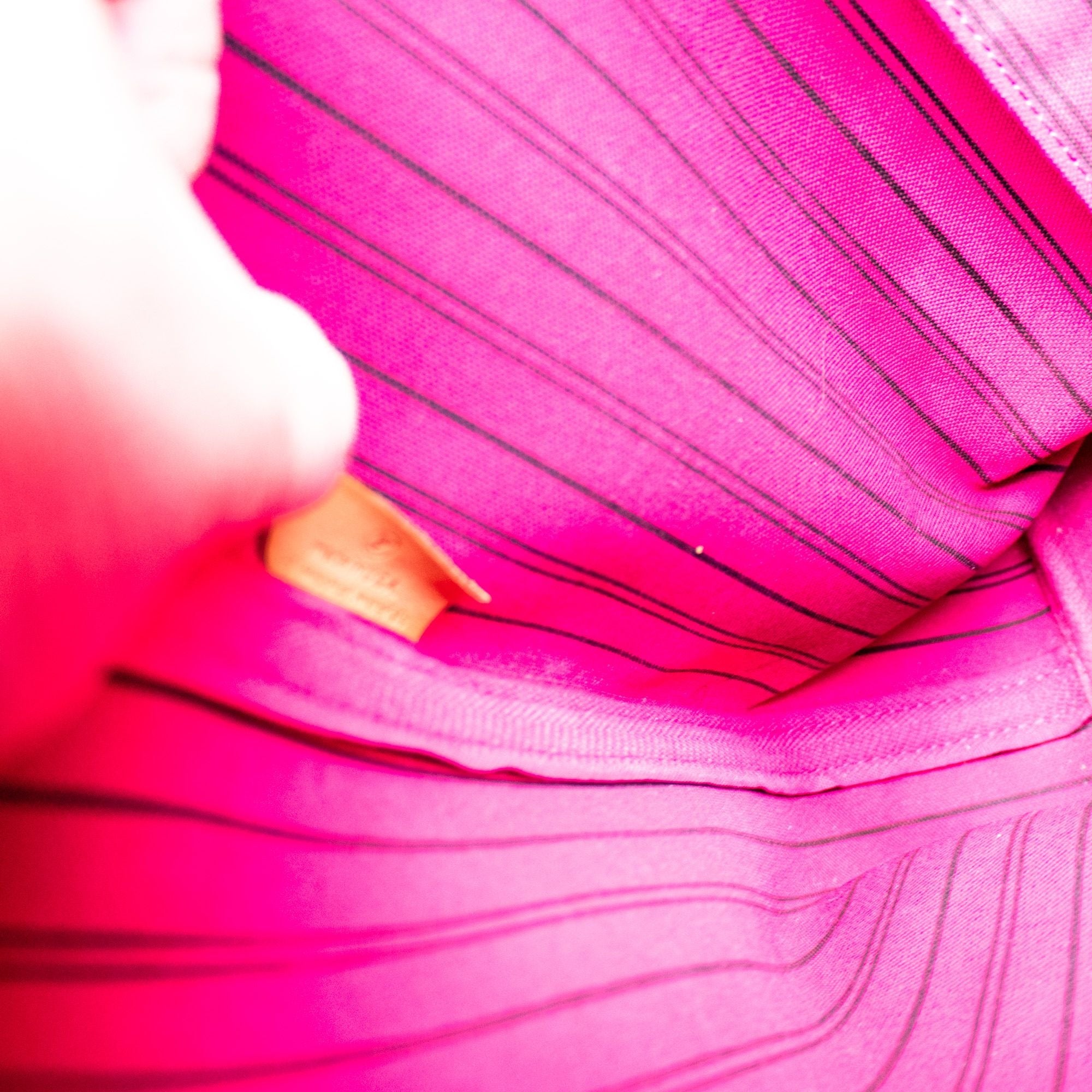 This bag was purchased from an authorized Louis Vuitton retailer and is guaranteed 100% authentic. The Neverfull GM is no longer available in this specific fuchsia combination, making this a rare colorway for collectors or daily luxe use.