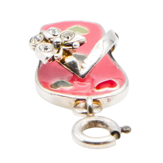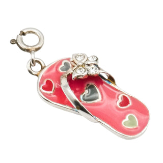 Sterling Silver Enamel Flip Flop Charm with Hearts | Summer Beach Charm Pendant