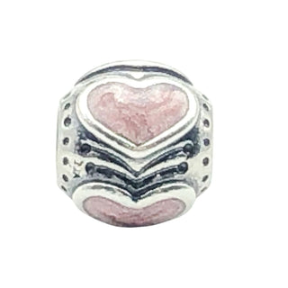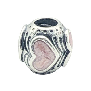 Pandora Pink Enamel Hearts Charm Sterling Silver Love Bead Retired