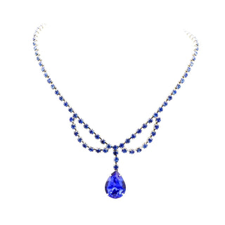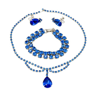 Vintage Royal Blue Rhinestone Parure Necklace, Bracelet and Earrings