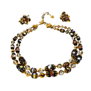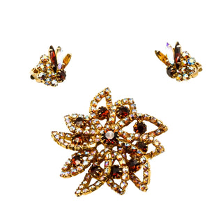 Vintage Aurora Borealis Demi-Parure Brooch and Earrings Set