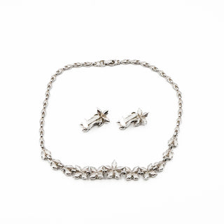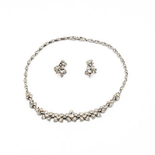 Vintage Signed Bogoff Clear Rhinestone Demi-Parure Necklace And Earrings Set