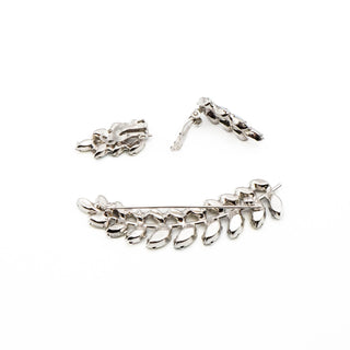 Vintage Green Rhinestone Demi-Parure Brooch and Clip-On Earrings