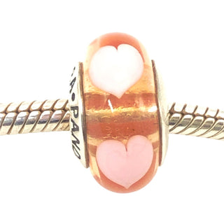 PANDORA Rose with Pink Hearts 925 ALE Sterling Silver Murano Glass Charm Bead