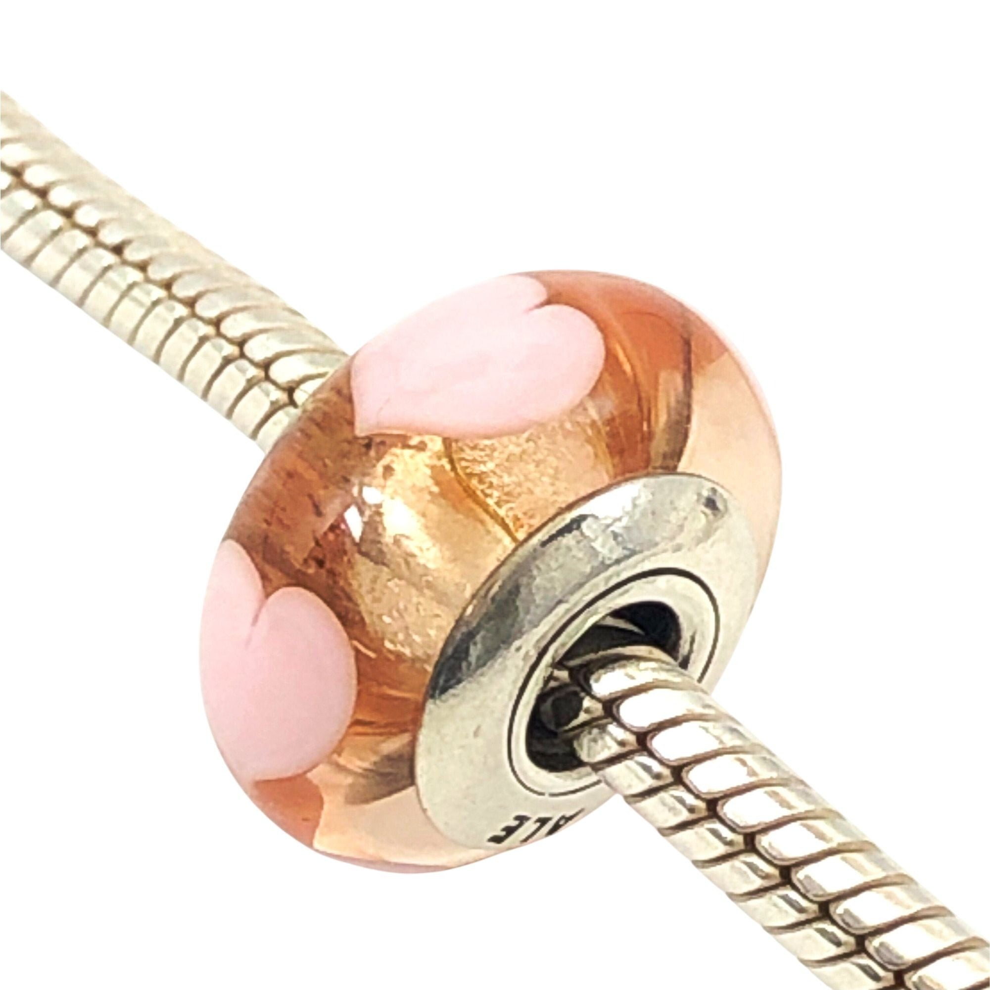 Authentic PANDORA Rose with Pink Hearts 925 ALE Sterling Silver Murano Glass Charm Bead 790660 - Retired. A beautiful and colorful charm that shows off your tender love. Works well with a pink themed bracelet too.