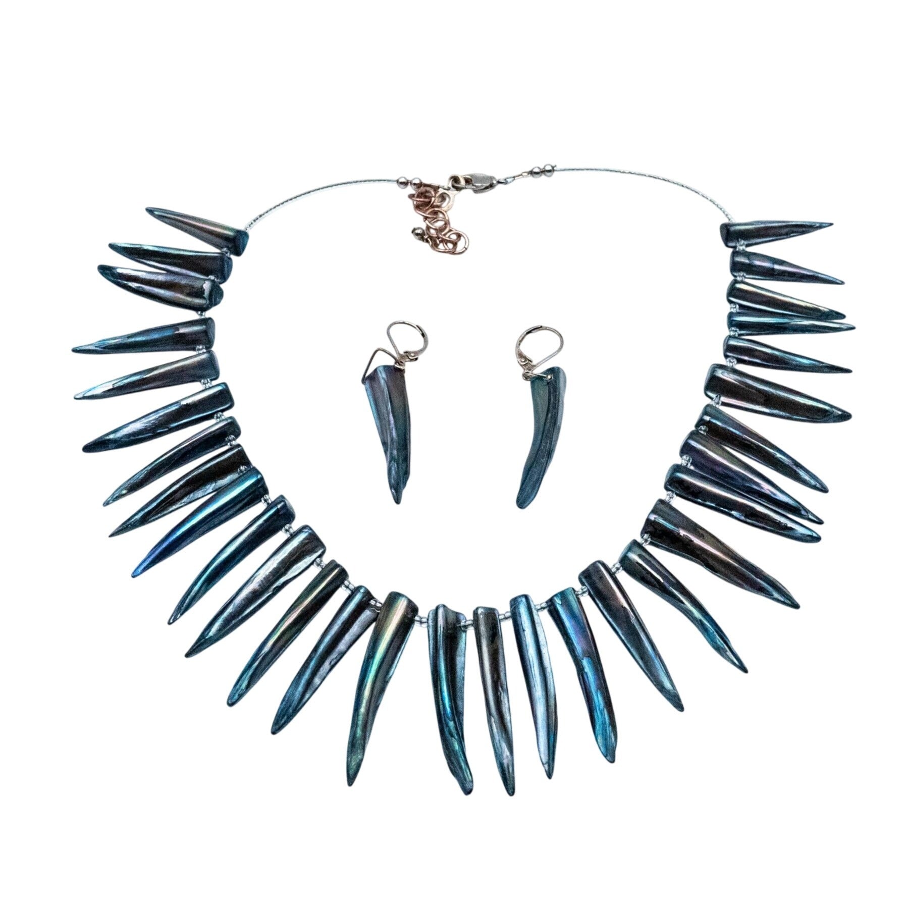 The natural iridescence of the abalone shells adds a magical, ocean-inspired glow. A beautiful boho-chic statement set for any occasion.
