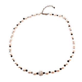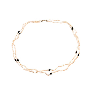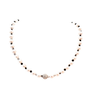 Vintage 17 to 20-Inch Cultured White 8.5mm Pearl & Onyx Necklace With GP Clasp