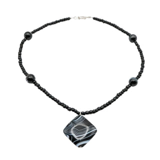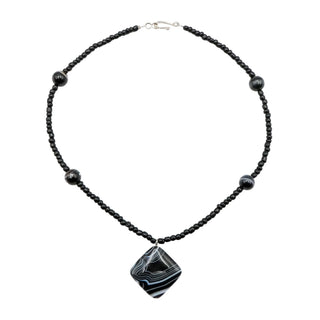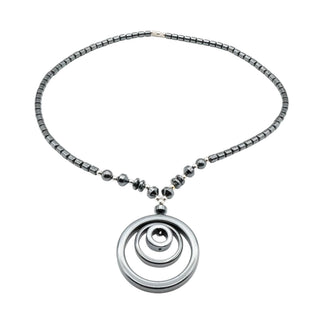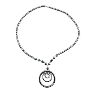 Hematite Spiral Pendant Necklace Silver Tone Beads 18 Inch Modern Minimalist
