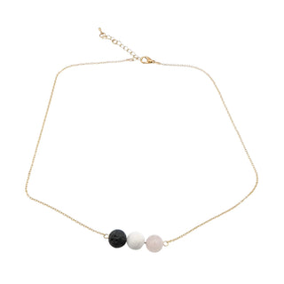Diffuser Necklace Lava Stone Howlite Rose Quartz Gold Tone Adjustable Chain