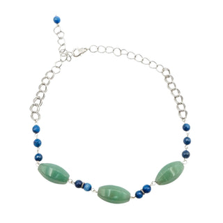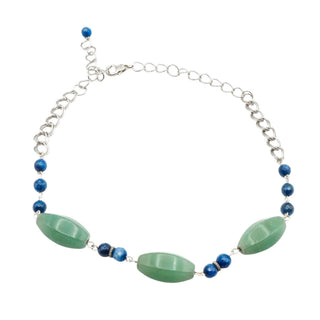 Nephrite and Sodalite Necklace Silver Tone Adjustable Green Blue Gemstone Necklace