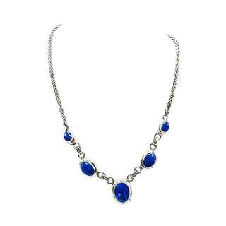 Vintage Lapis Lazuli 19-Inch Sterling Silver Wheat Chain Necklace