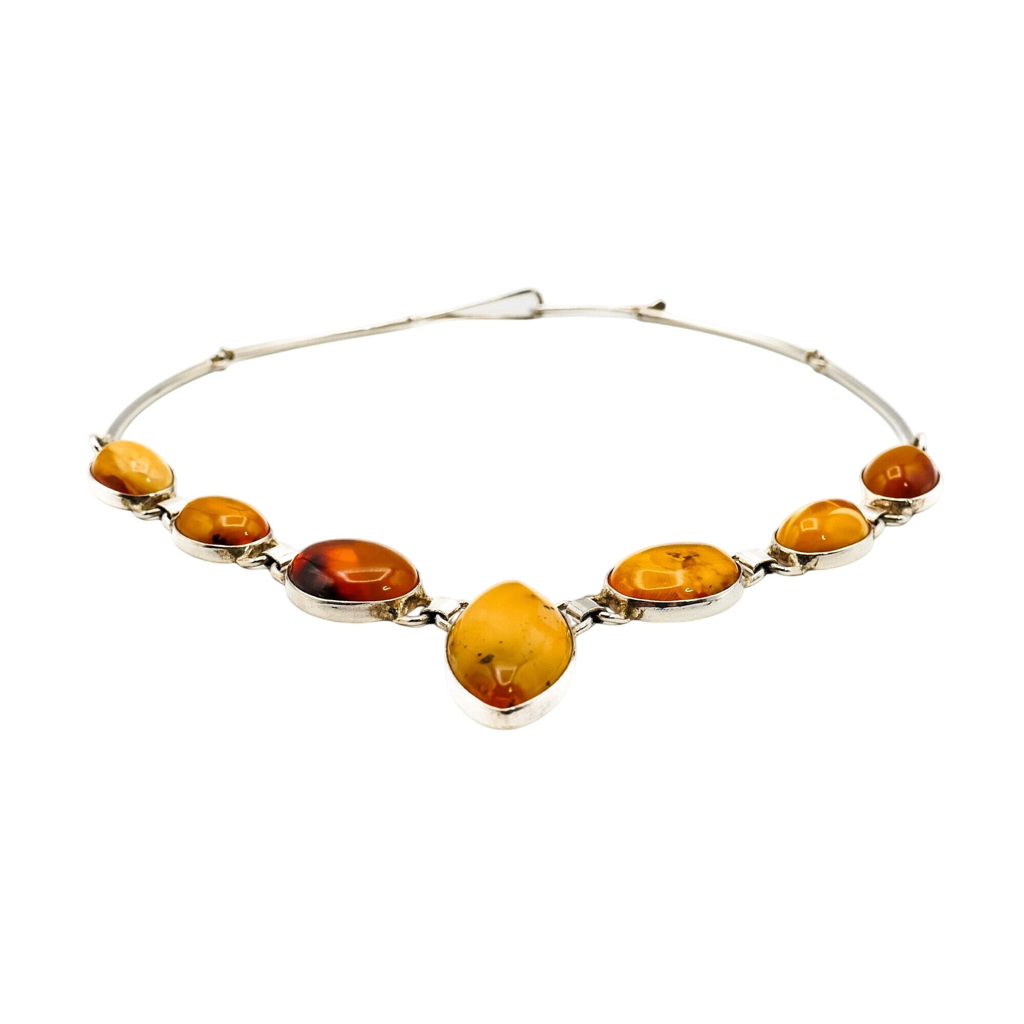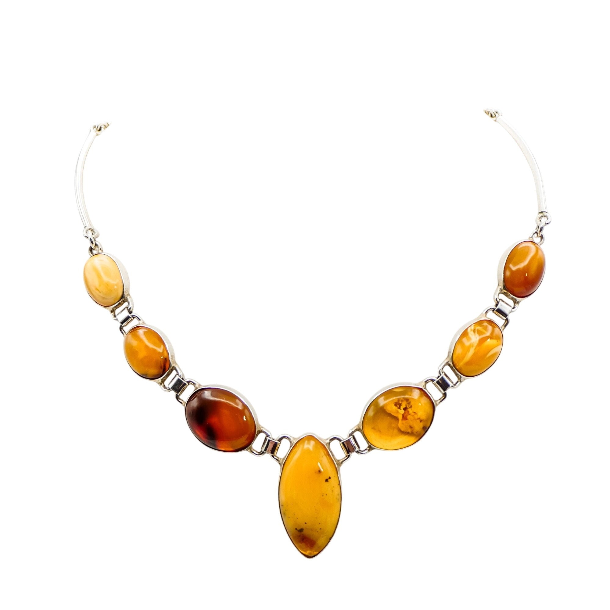 In a world where elegance meets timelessness, this vintage choker necklace becomes an emblem of heritage. Each piece of Baltic amber tells its own story, while the sterling silver setting enhances its warmth. The 16-inch design lays gracefully around the neck, evoking a sense of nostalgia for tales untold.