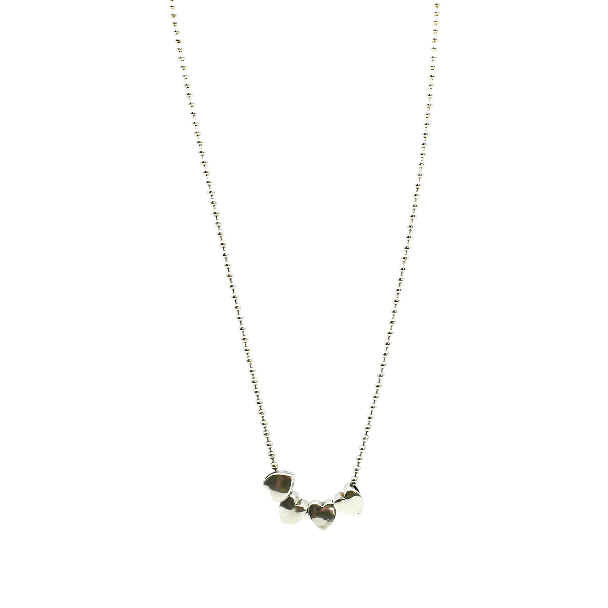 Elegant beaded sterling silver necklace featuring four sliding heart charms — a meaningful gift for a 40th birthday, fourth child, or anything symbolic of the number 4.