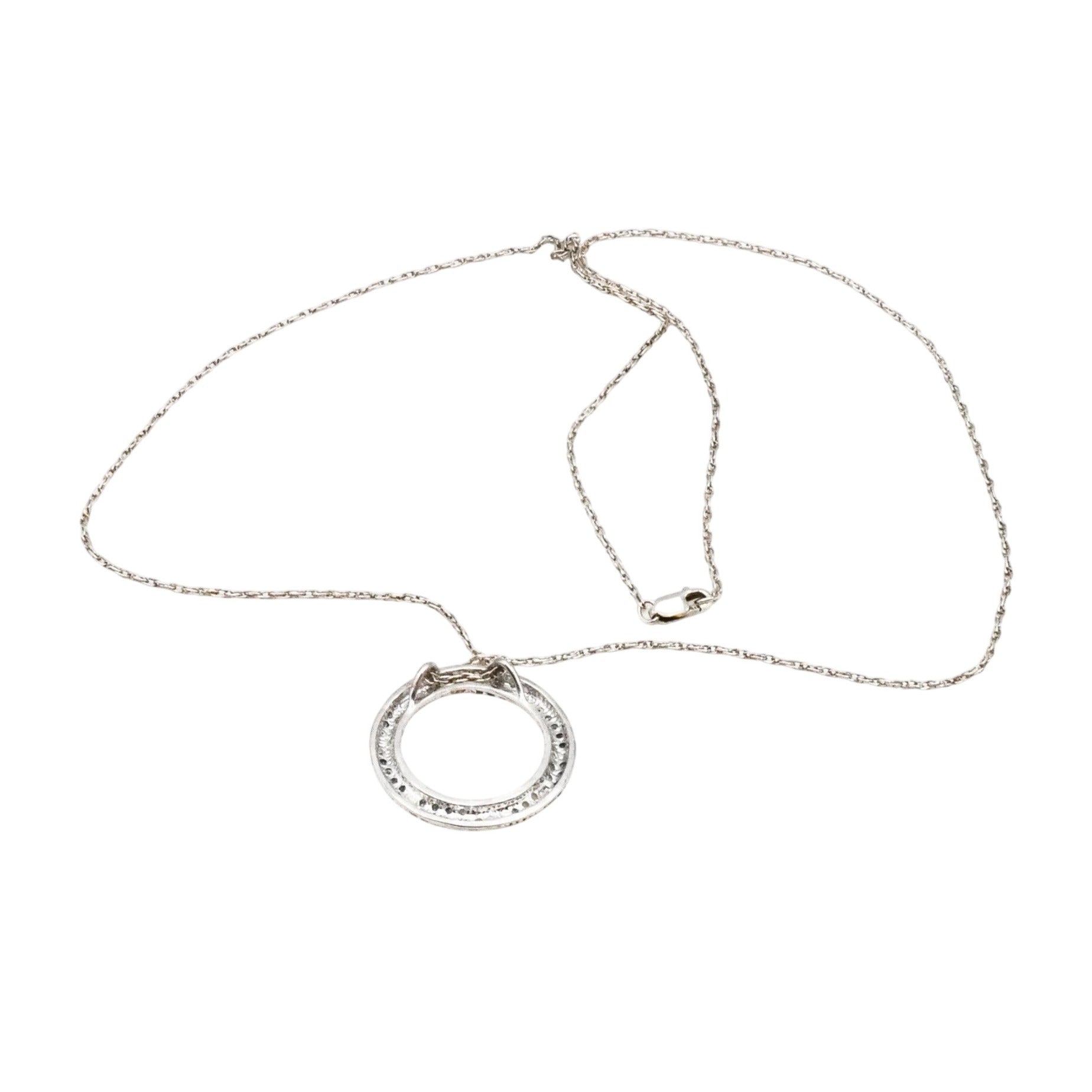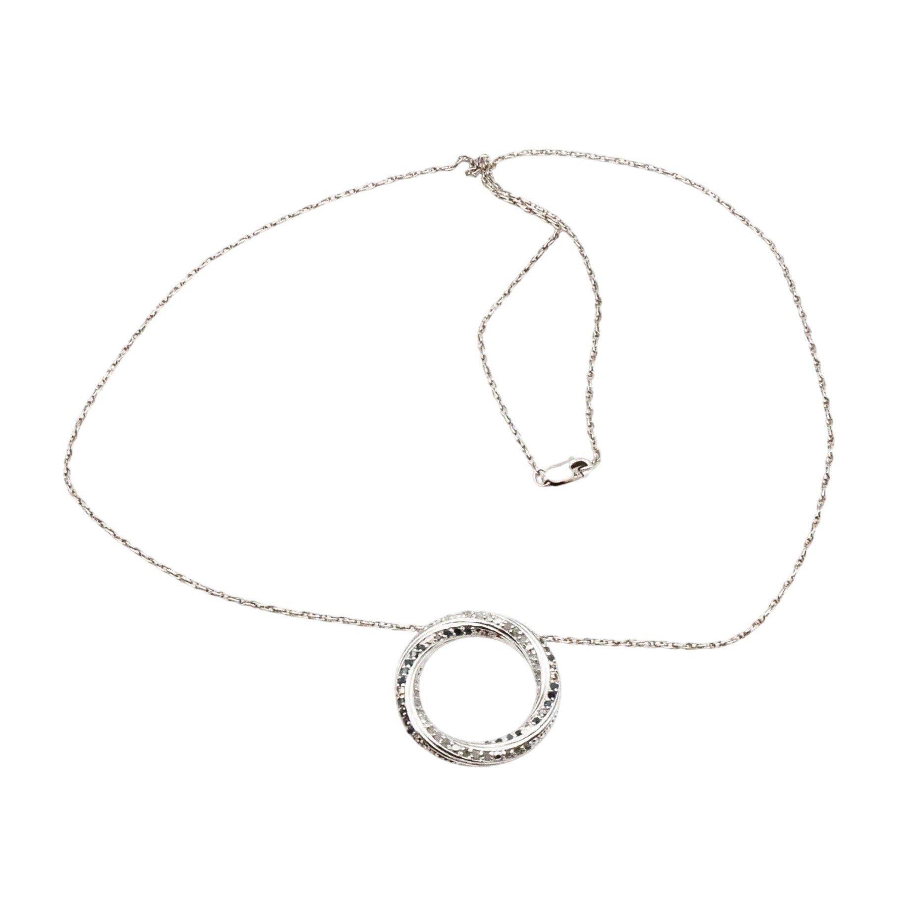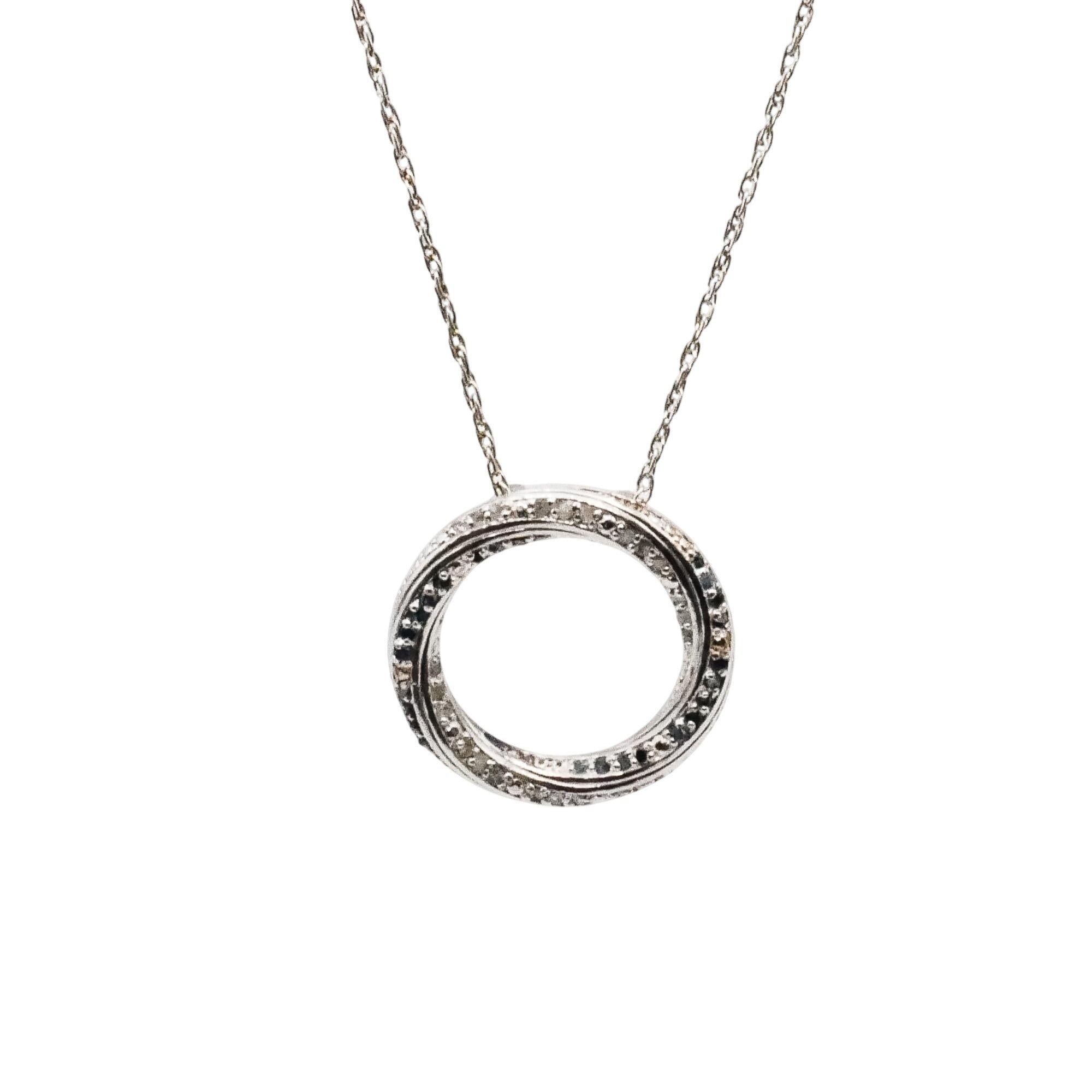 Elegant and timeless, this 20-Inch necklace features a stunning circle pendant set with alternating white and black diamonds. A beautiful representation of unity, contrast, and balance. Diamonds are symbols of love, purity, and resilience — and the April birthstone.