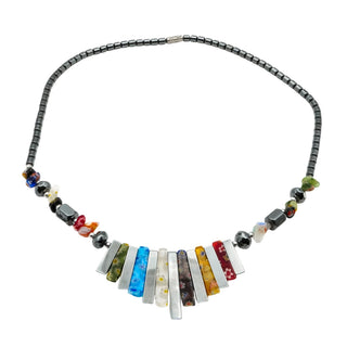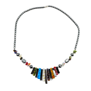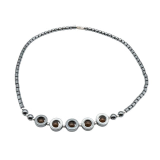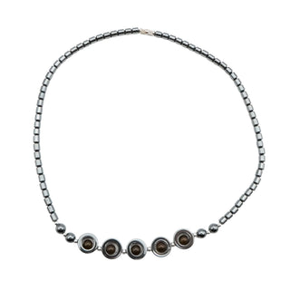 Hematite Spiral Pendant Necklace Silver Tone Beads 18 Inch Modern Minimalist