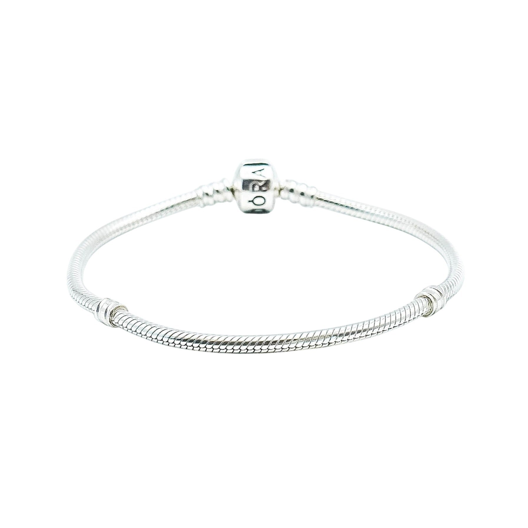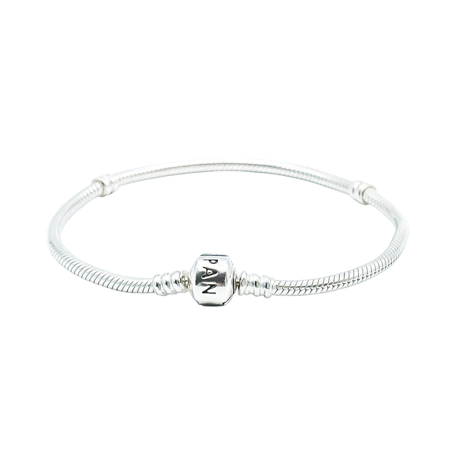Authentic PANDORA Moments 6.7-Inch Snake Chain Bracelet Sterling Silver With Pandora Clasp #590702-HV-B, 925 ALE. This best selling bracelet is the perfect foundation for any Pandora charm collection.