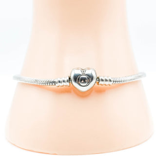 PANDORA Sterling Silver Snake Chain Bracelet With Pandora Logo Heart Clasp - 7.1 Inches