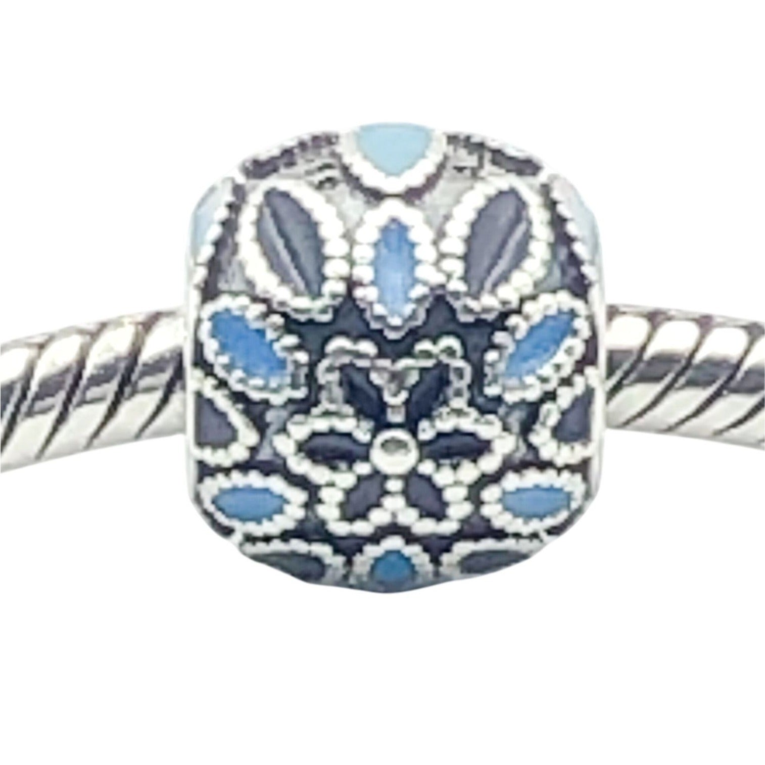 Authentic PANDORA Cathedral Rose S925 ALE Sterling Silver Charm Designer Bead With Blue Enamel 791374ENMX - Retired. Beautifully detailed sterling silver bead with flowers petals and leaves in different shades of blue.
