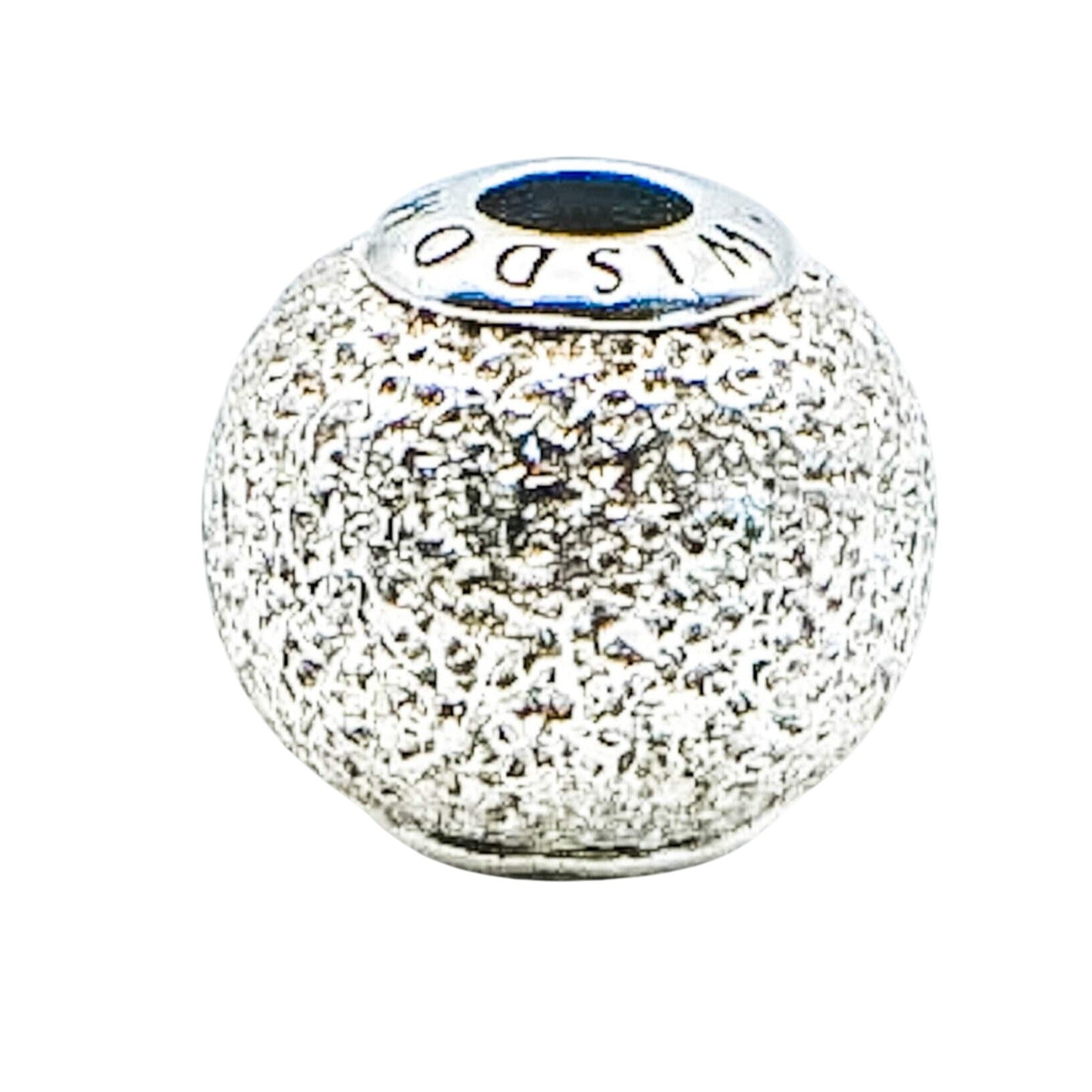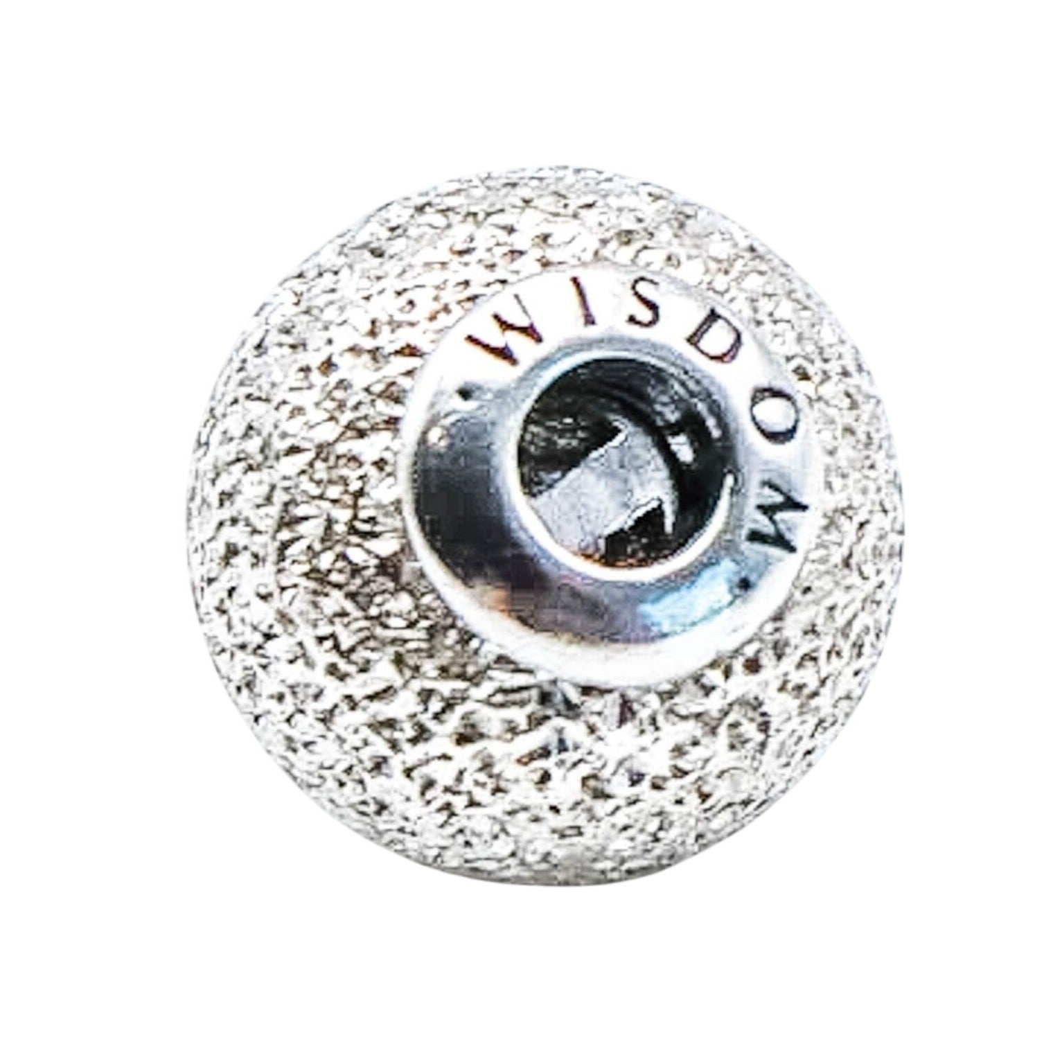 Authentic PANDORA ESSENCE Wisdom Sterling Silver Charm 796016 - Retired. Part of the discontinued ESSENCE collection by Pandora, this Sterling Silver bead features a textured surface created by the diamond point engraving technique. It bears the Pandora Hallmarks on one side and the word "Wisdom" on the other. A meaningful bead for your bracelet design.