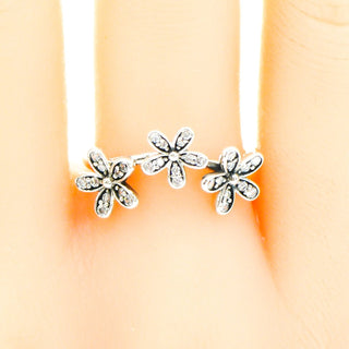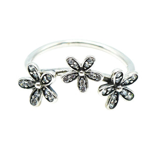 PANDORA Size 7.5 Dazzling Daisies Triple Sterling Silver Ring With Clear Zirconia
