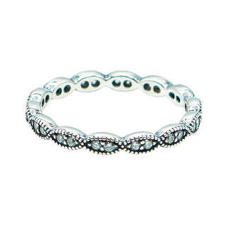 PANDORA Size 7.5 (56) Sparkling Leaves Sterling Silver Stackable Ring With Clear Zirconia