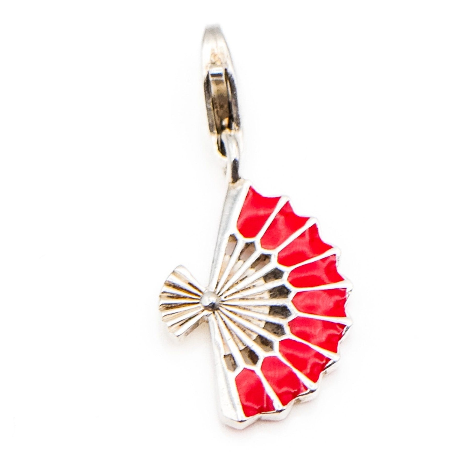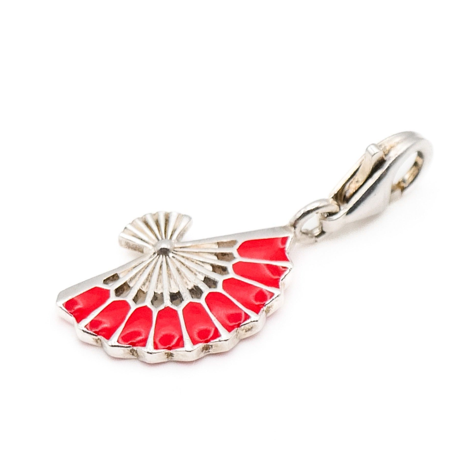 Crafted in sterling silver, this Thomas Sabo charm features a vibrant red enamel fan design. Its lobster clasp ensures secure attachment to bracelets or necklaces.