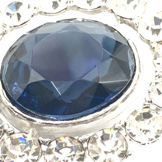 Vintage Kenneth Jay Lane Silver Tone Large Blue Oval Faceted Glass and Clear Rhinestone Brooch Pendant