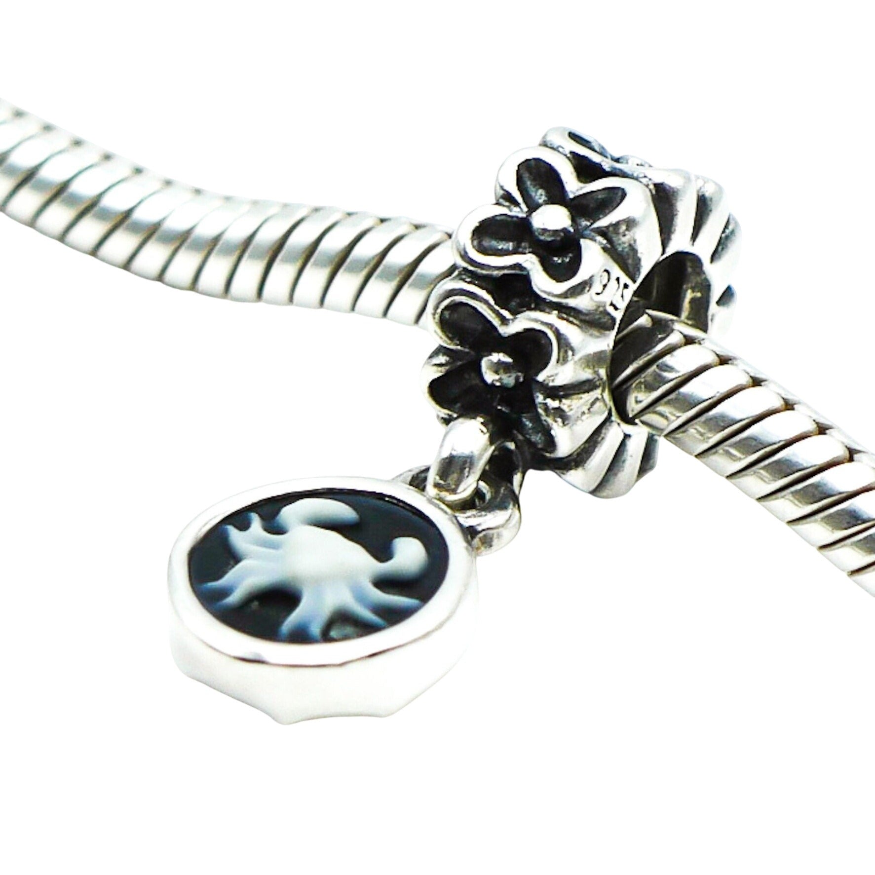 Authentic PANDORA Cancer Cameo Sterling Silver Dangle Charm 790500CAM07 - Retired. This Sterling Silver charm features a black agate dangle adorned with a white crab for those born between June 22 and July 22. Cancer is a cardinal water sign and the crab symbolizes its ability to exists in both its emotional and material realms.