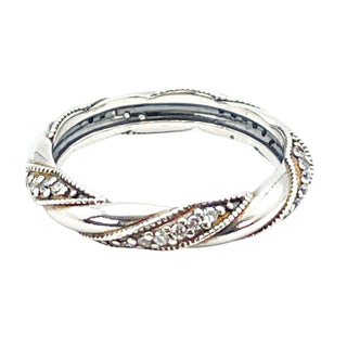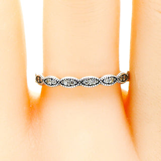 PANDORA Size 7.5 (56) Sparkling Leaves Sterling Silver Stackable Ring With Clear Zirconia