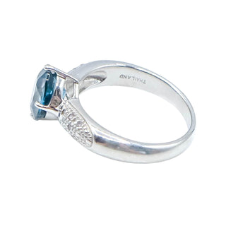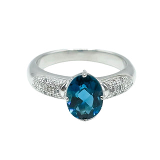 Sterling Silver London Blue Topaz & Diamond Solitaire Engagement December Birthday Ring Size 6.75