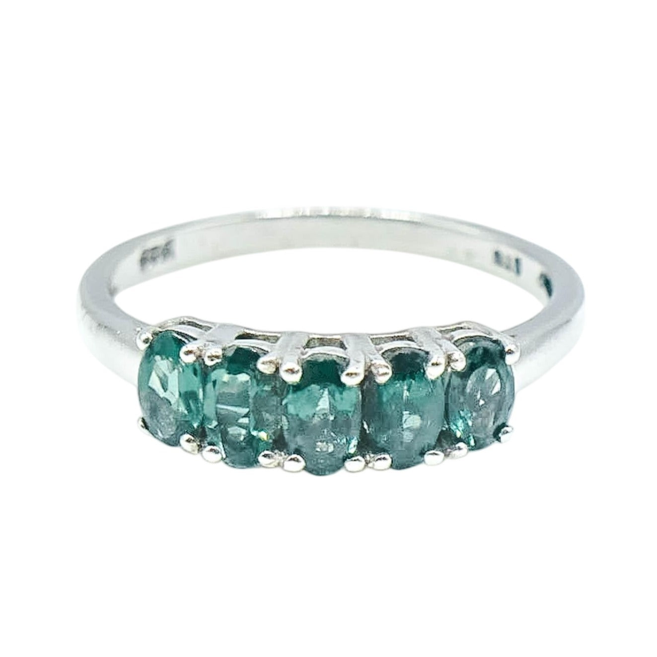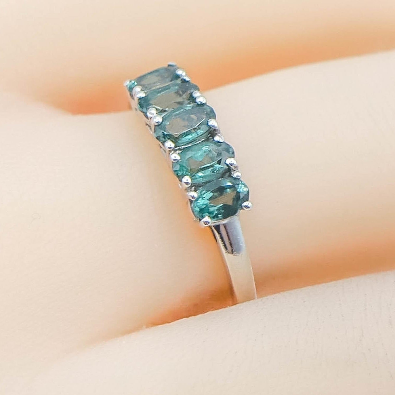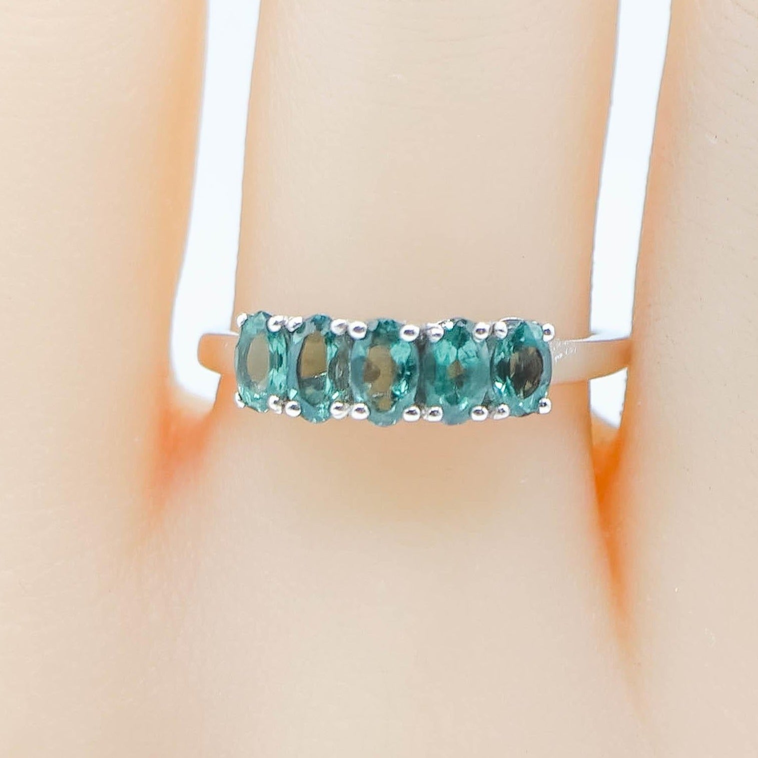 Sterling Silver Indian Ocean Apatite Ring | Size 8 | Five-Stone Oval Band