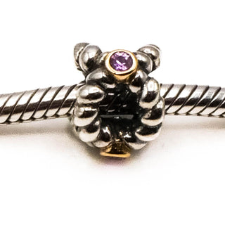 PANDORA Rare Retired Binding Beauty Sterling Silver Charm With 14K Gold And Pink Sapphire
