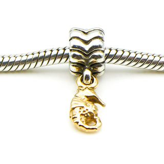 PANDORA RARE Seahorse Sterling Silver Dangle Charm With 14K Gold Seahorse
