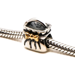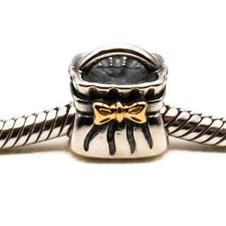 PANDORA Purse with Gold Bow Charm 925 ALE Sterling Silver Purse With 14K Gold Bow