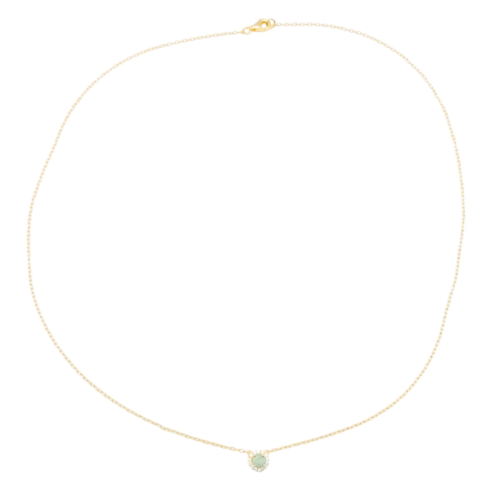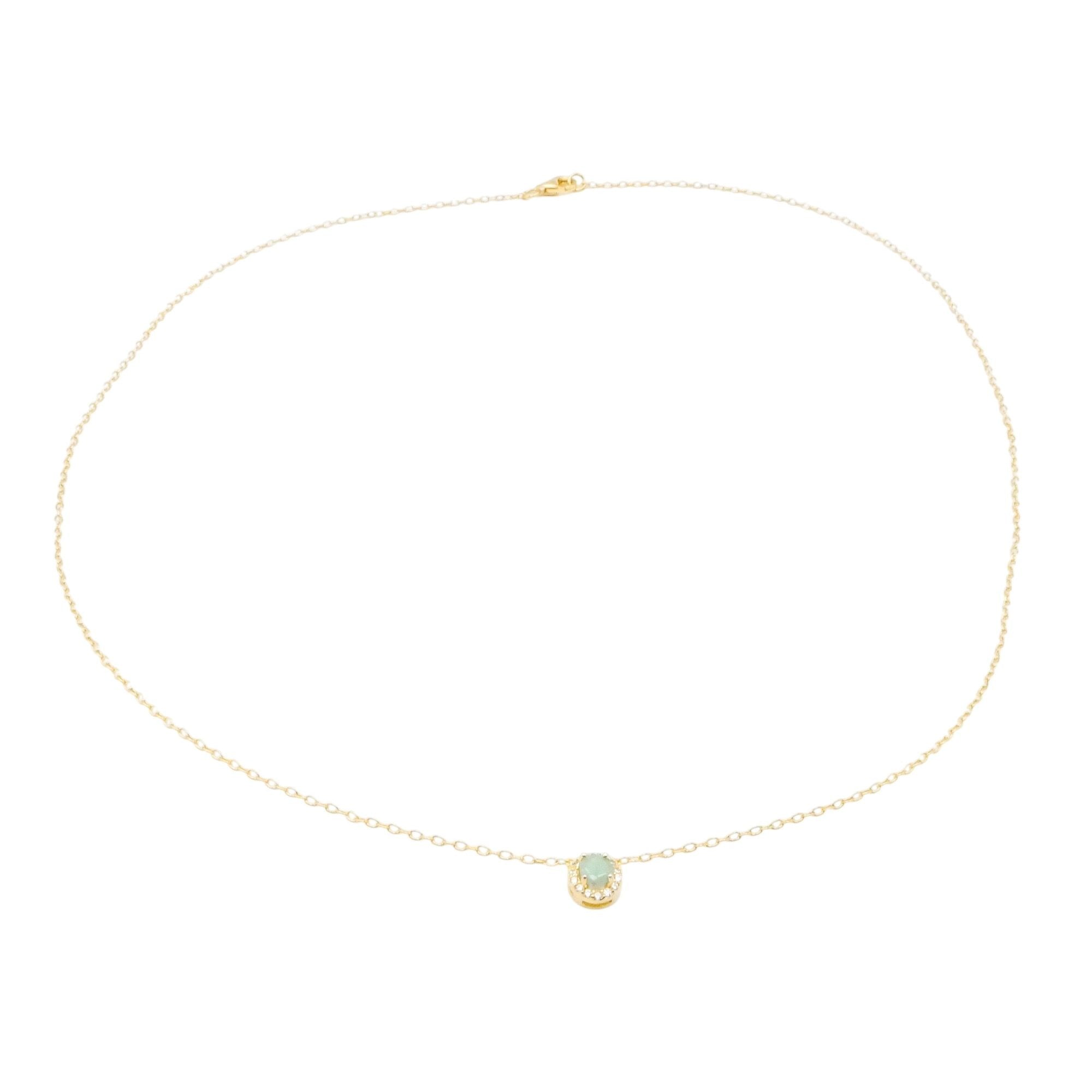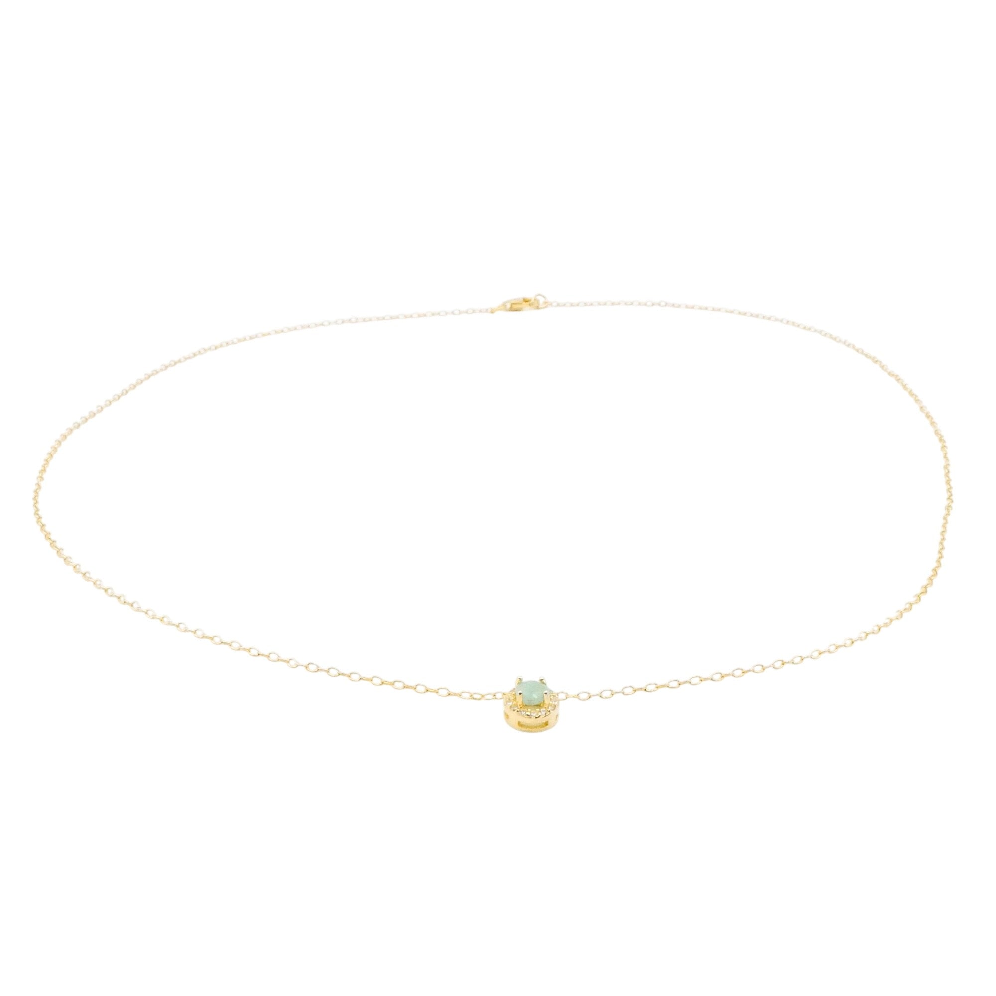 Elegant and refined, this delicate halo necklace features a genuine natural emerald set within a sparkling cubic zirconia halo, all crafted in gold plated sterling silver. The soft green hue of the emerald offers timeless sophistication, while the minimalist setting allows the gemstone’s natural beauty to take center stage.