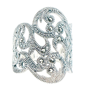Vintage Sterling Silver Marcasite Scroll Ring Band Size 6.5