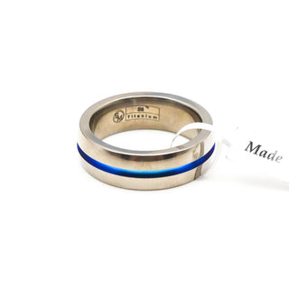 Edward Mirell Women's Titanium Wedding Band Ring With Blue Accents Size 7.5