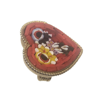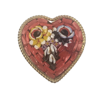 Vintage Mosaic Gold Tone Heart Pin With Bouquet of Flowers