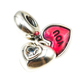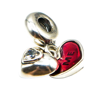 Pandora You And Me Sterling Silver Heart Dangle Charm With Red Enamel