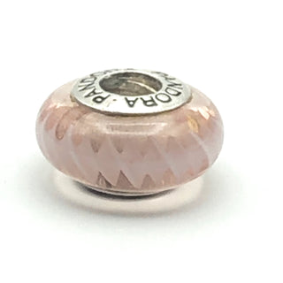 PANDORA Pink Zig Zag 925 ALE Sterling Silver Charm Pink Murano Glass Bead 790620 - Retired