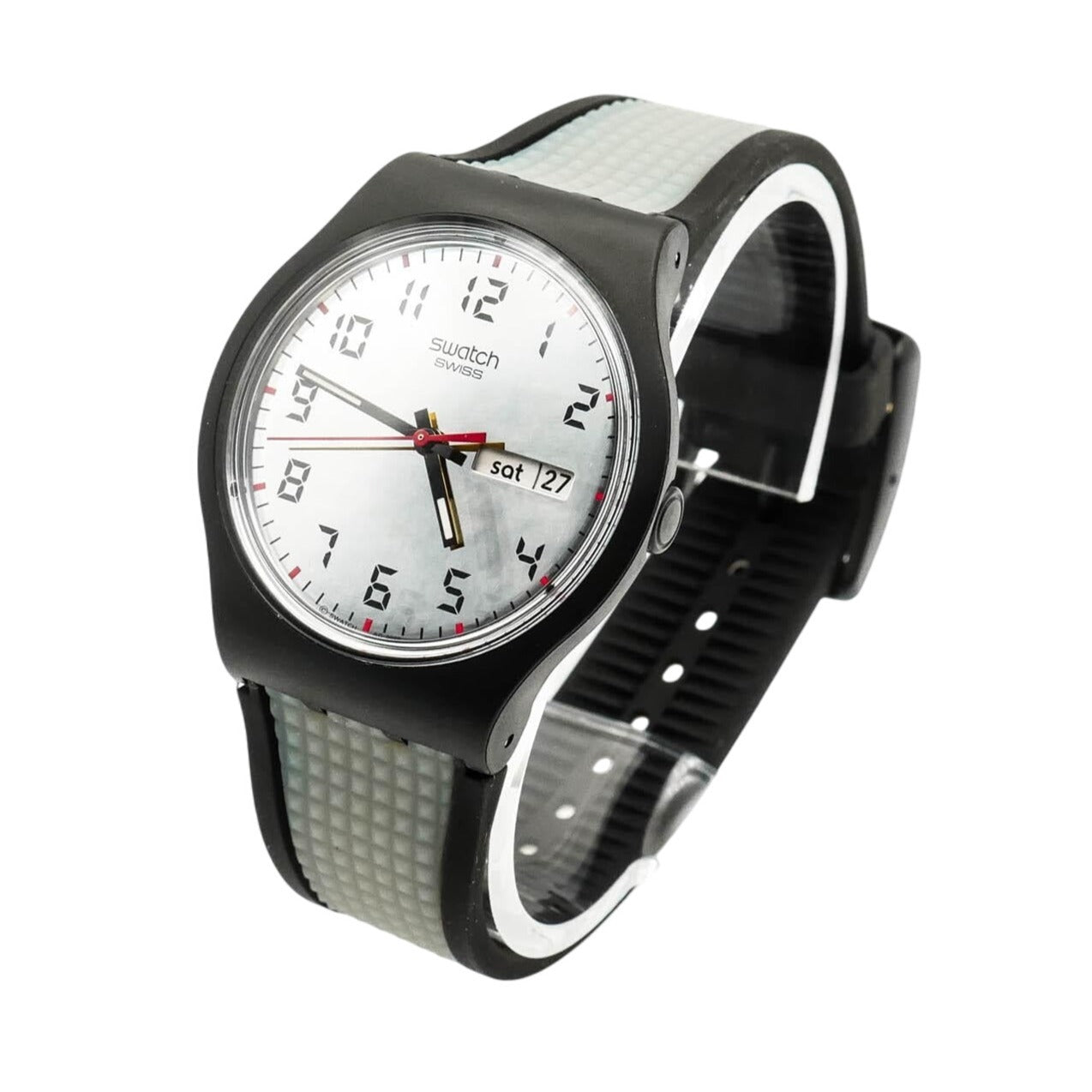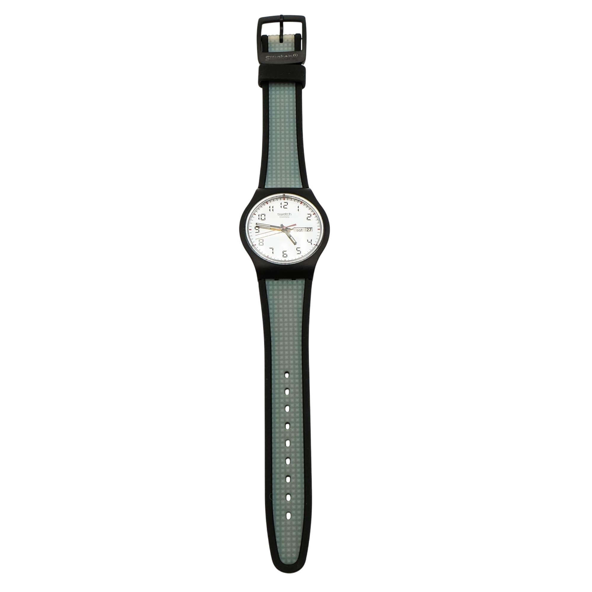 This waterproof Swatch is powered by a precision Swiss quartz movement with a newly installed battery, ensuring reliable timekeeping.