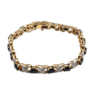 Diamond & Sapphire X’s and O’s Bracelet – Gold Plated Sterling Silver 7.5 Inch Tennis Bracelet