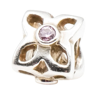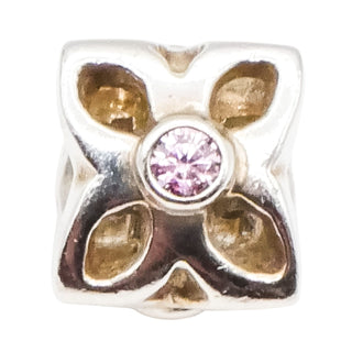 PANDORA Four Petal Flower Sterling Silver Charm With Clear Zirconia