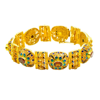 Vintage Gold Plated Sterling Silver Link Bracelet With Citrine & Enamel 7.2-Inches