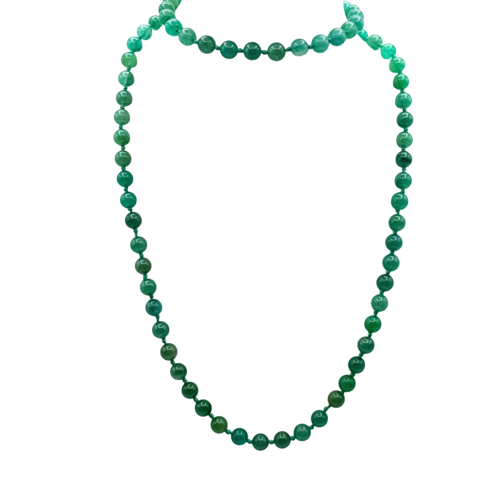 Elevate your jewelry collection with this stunning 36-Inch strand of luscious green Jadeite Jade beads, each measuring 8mm and individually hand-knotted for security and elegance. A timeless symbol of purity, harmony, and protection, jade has been cherished in fine jewelry for centuries.