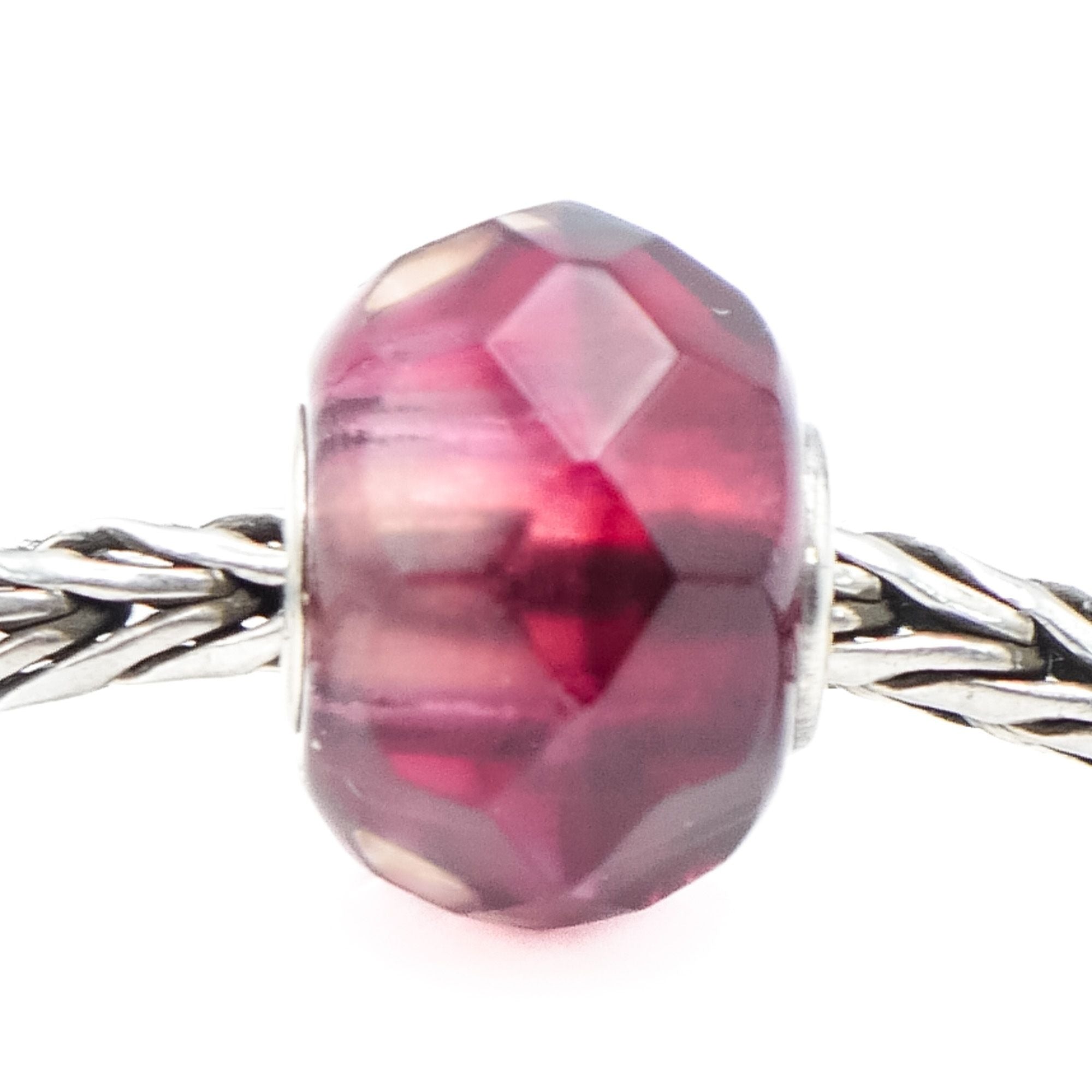 Authentic Trollbeads Red Pink Prism Glass Bead Sterling Silver Charm TGLBE-10216 by Lise Aagaard - Retired. This beautiful faceted glass bead features hues of pink and red with a Sterling Silver core. Charm is pre-owned and in great condition.